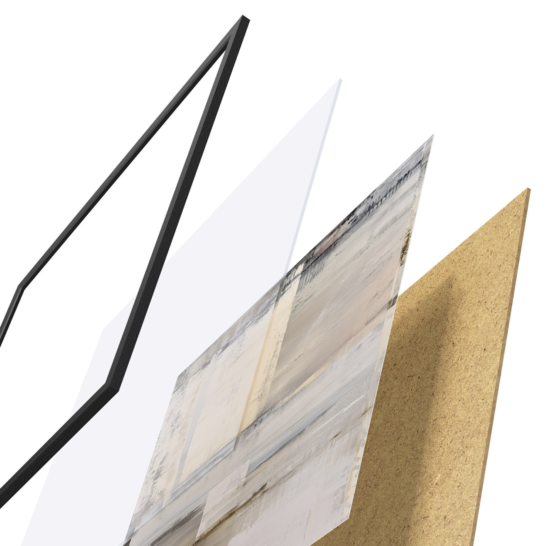 Das Poster besteht aus einem Rahmen, Plexiglas, einem gedruckten Bild und einer Rückwand aus Spanplatten. Dank der Halterungen auf der Rückseite kann das Poster sofort an die Wand gehängt werden.