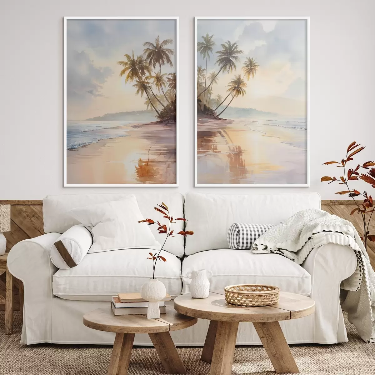 Poster Sonnenuntergang am Strand einer Insel im Aquarellstil d01177