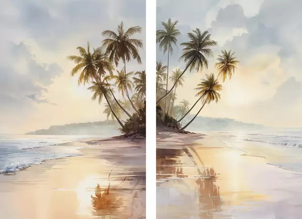 Poster Sonnenuntergang am Strand einer Insel im Aquarellstil d01177