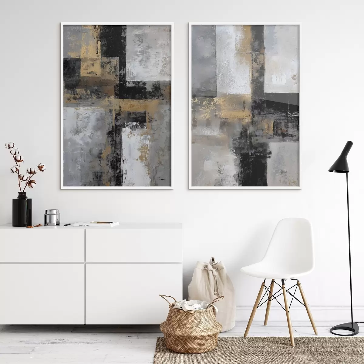 Poster zeitgenössische strukturelle Abstraktion in Schwarz-, Grau- und Weißtönen d01179