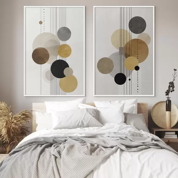 Poster Abstraktion mit Kreisen und Linien in warmen Farben d01182