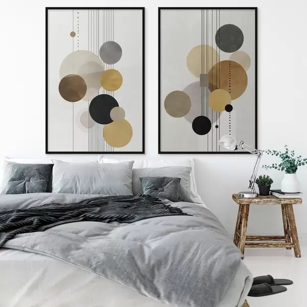 Poster Abstraktion mit Kreisen und Linien in warmen Farben Nr d01182