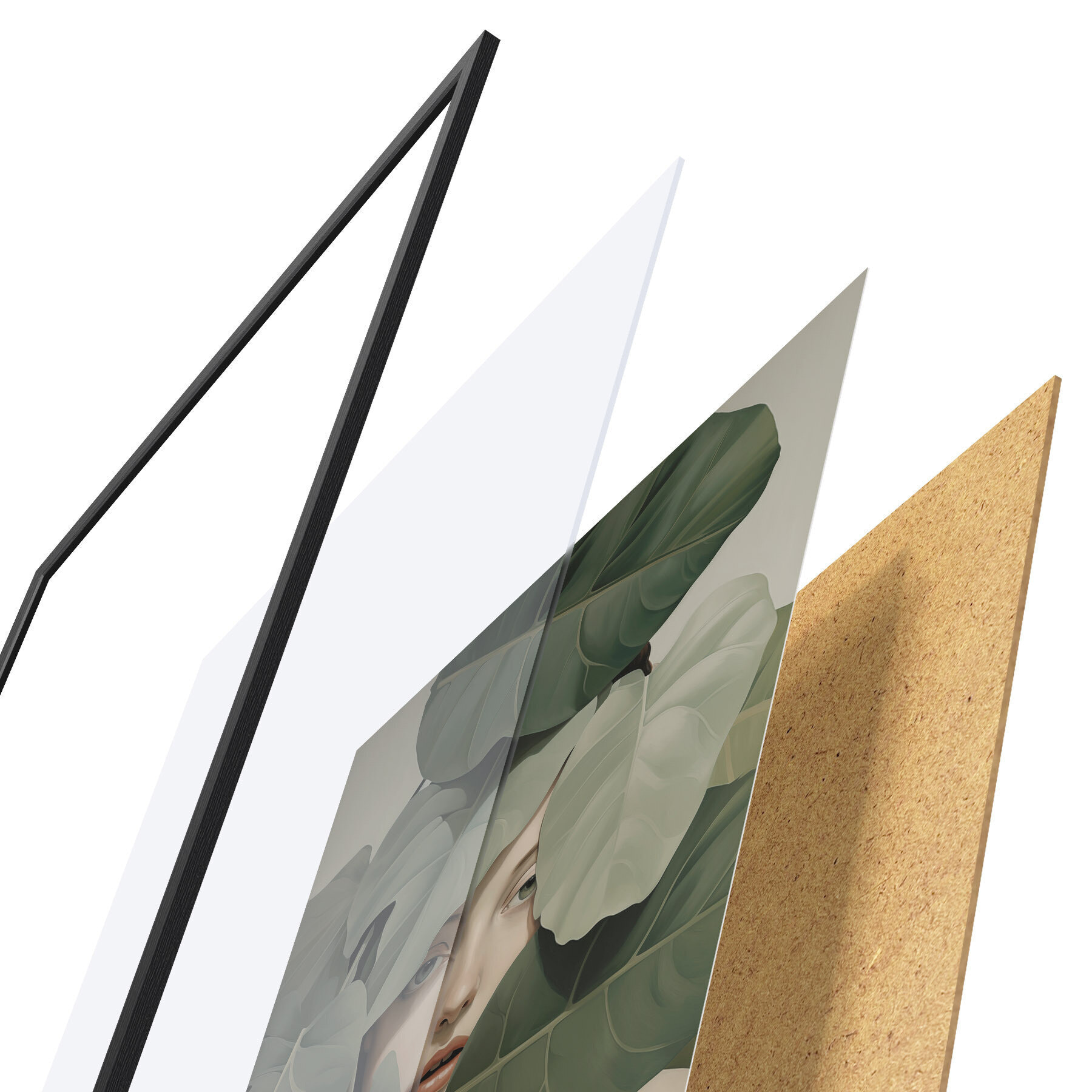 Das Poster besteht aus einem Rahmen, Plexiglas, einem gedruckten Bild und einer Rückwand aus Spanplatten. Dank der Halterungen auf der Rückseite kann das Poster sofort an die Wand gehängt werden.