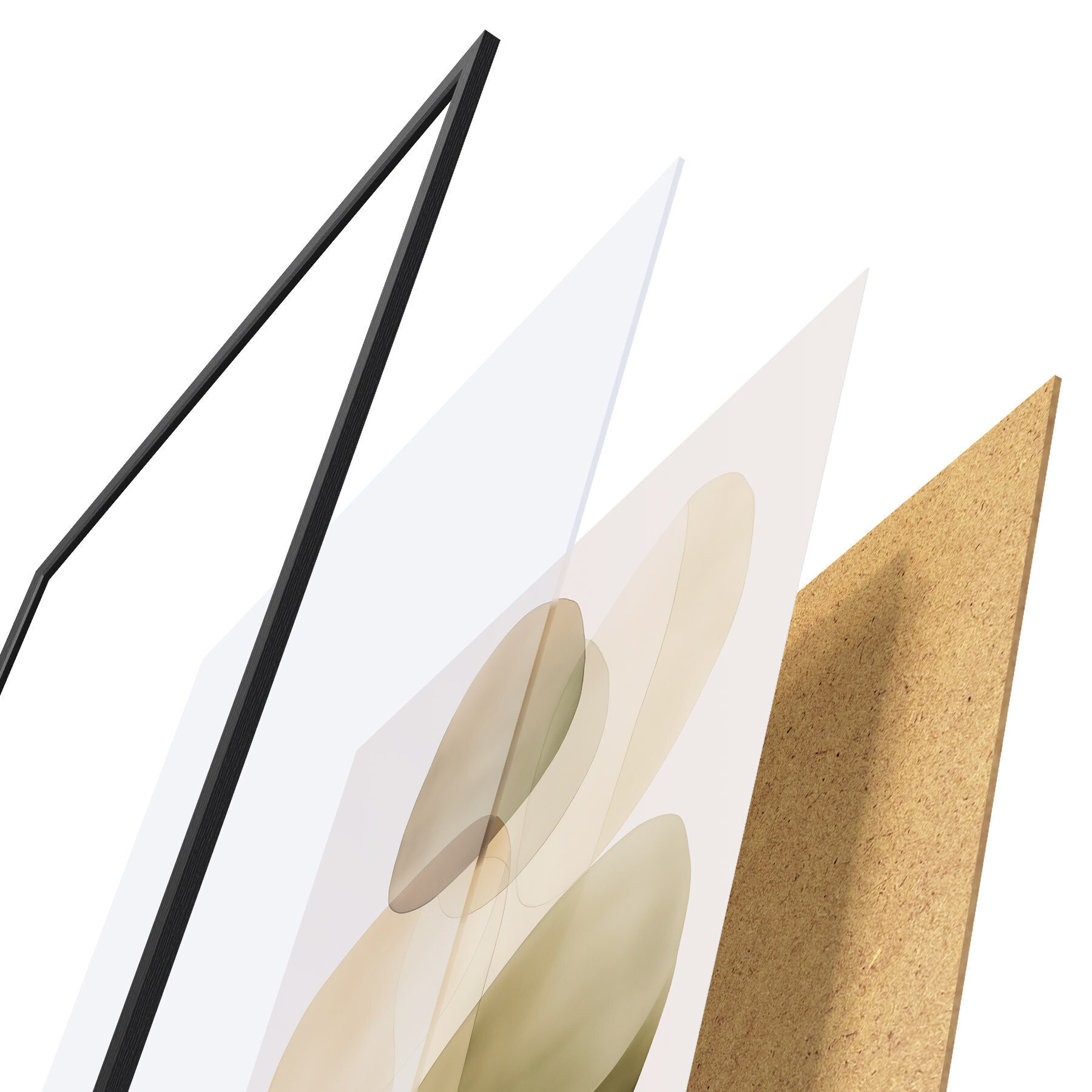 Das Poster besteht aus einem Rahmen, Plexiglas, einem gedruckten Bild und einer Rückwand aus Spanplatten. Dank der Halterungen auf der Rückseite kann das Poster sofort an die Wand gehängt werden.