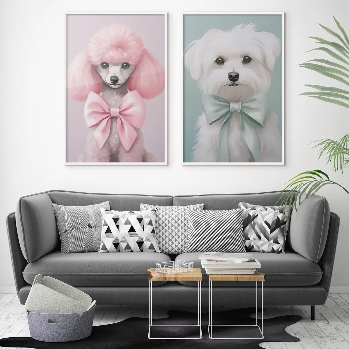 Poster Hund mit Schleife d01193