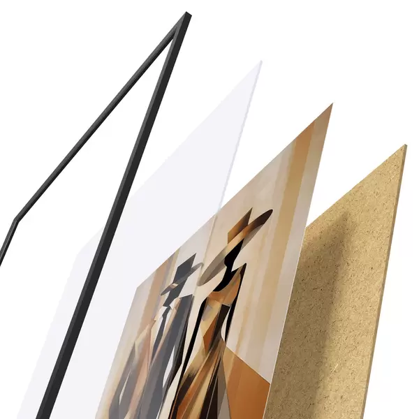 Das Poster besteht aus einem Rahmen, Plexiglas, einem gedruckten Bild und einer Rückwand aus Spanplatten. Dank der Halterungen auf der Rückseite kann das Poster sofort an die Wand gehängt werden.