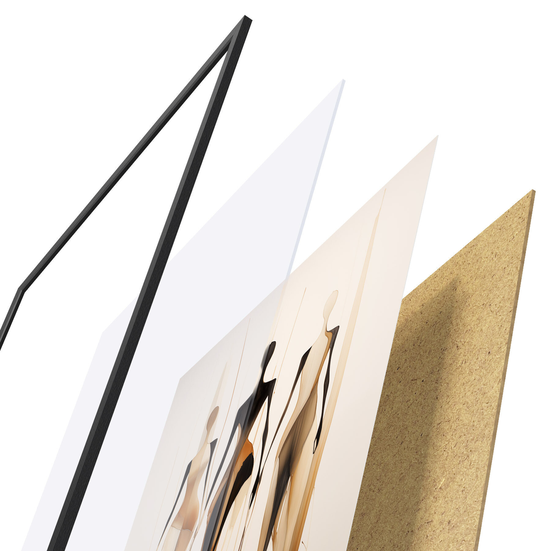 Das Poster besteht aus einem Rahmen, Plexiglas, einem gedruckten Bild und einer Rückwand aus Spanplatten. Dank der Halterungen auf der Rückseite kann das Poster sofort an die Wand gehängt werden.