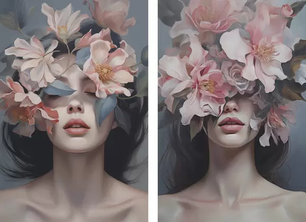 Poster Abstraktes Frauenporträt mit Blumen d01221