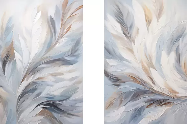 Poster Abstrakte Malerei von Federn in Weiß-, Blau- und Brauntönen, mit einer weichen, fließenden Textur und einem hellen Hintergrund d01234