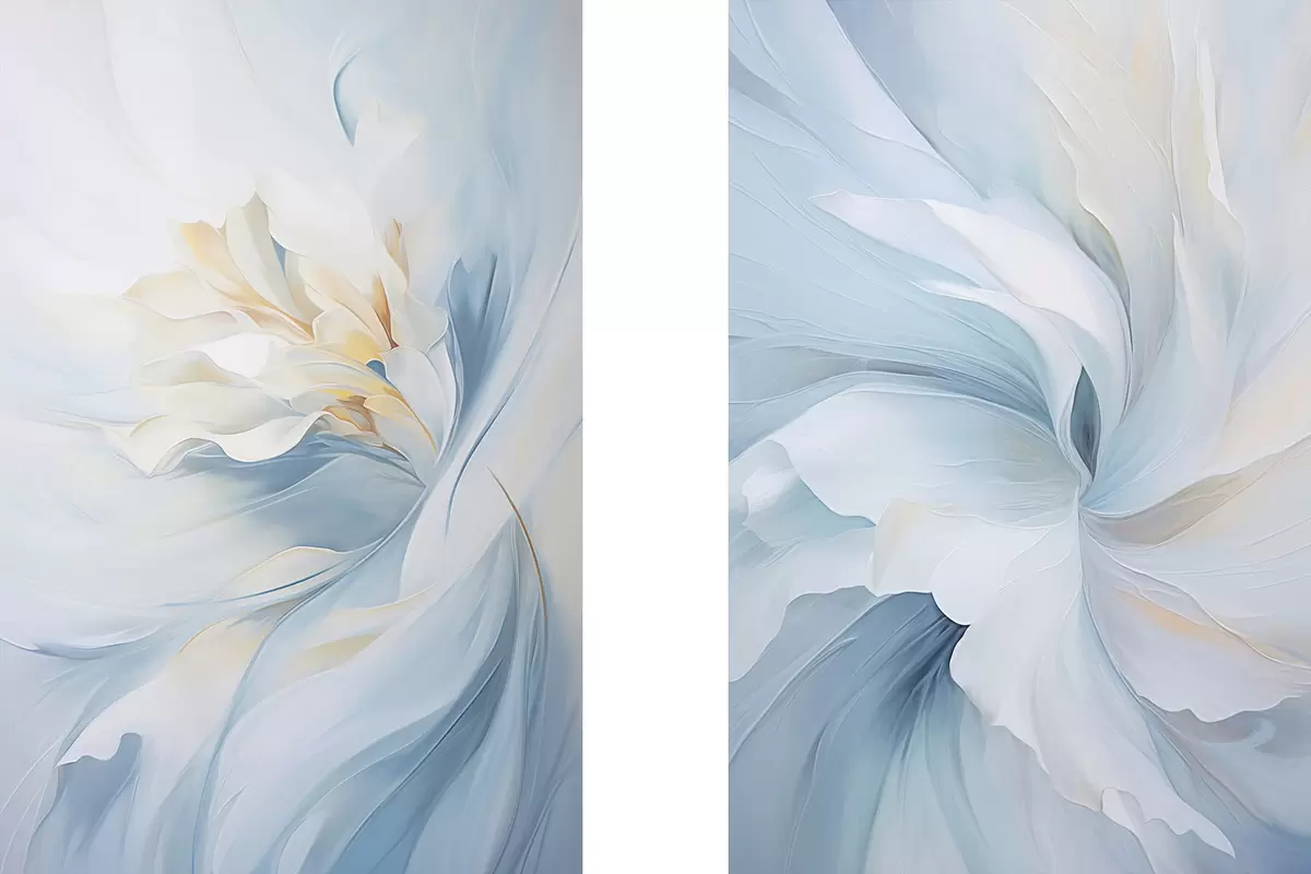 Poster Abstrakte, zarte, durchscheinende Blütenblätter, die sich bei sanfter Beleuchtung und einer malerischen Textur nach innen drehen. Nr d01244