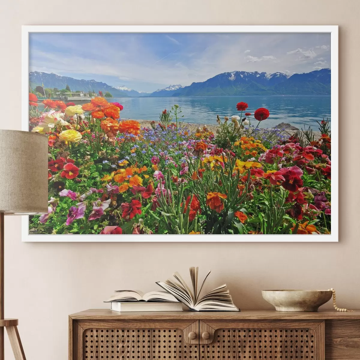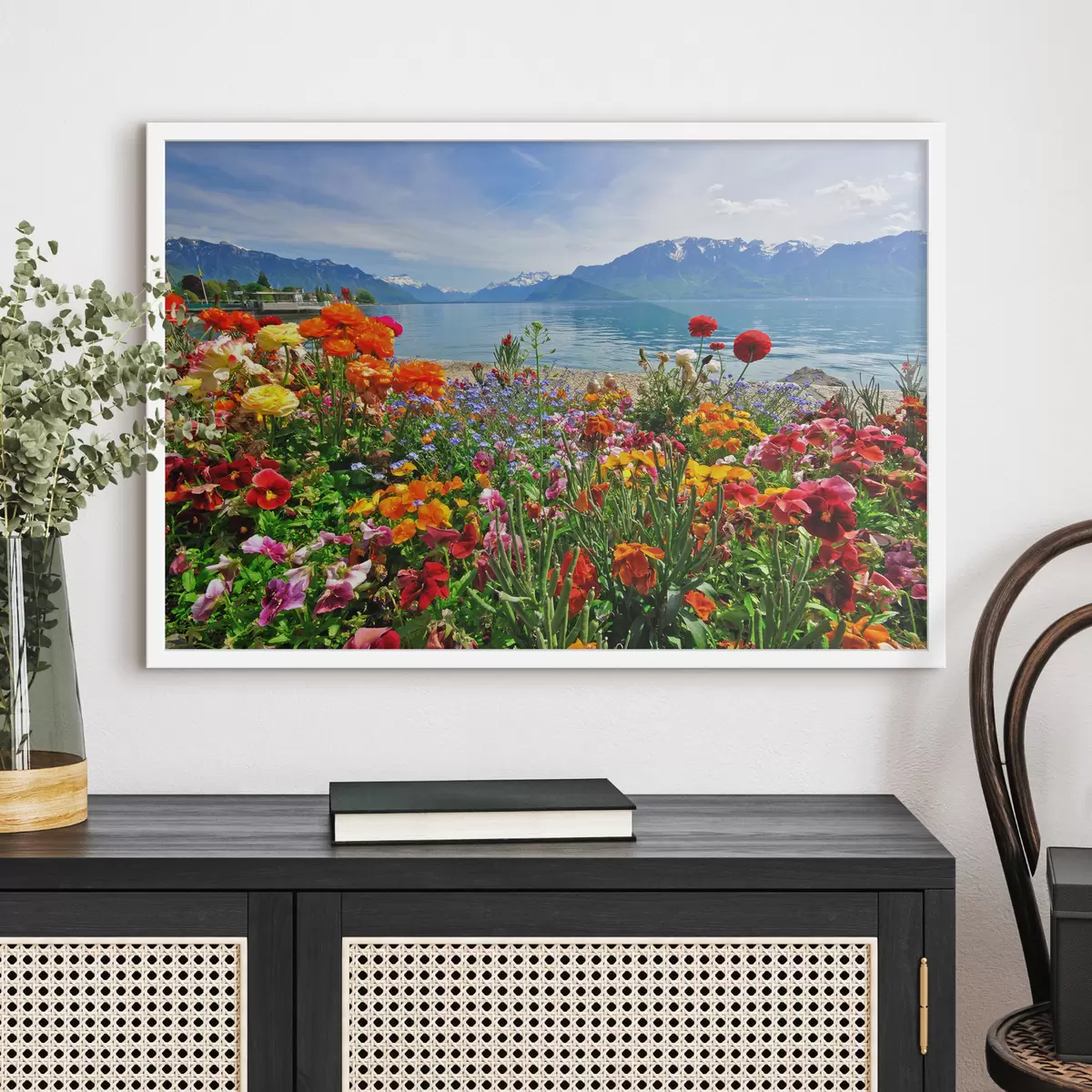 Das Poster besteht aus einem Rahmen, Plexiglas, einem gedruckten Bild und einer Rückwand aus Spanplatten. Dank der Halterungen auf der Rückseite kann das Poster sofort an die Wand gehängt werden.