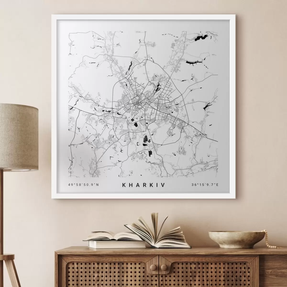 Poster Minimalistische Karte der Stadt Charkow in der Ukraine f31429v1