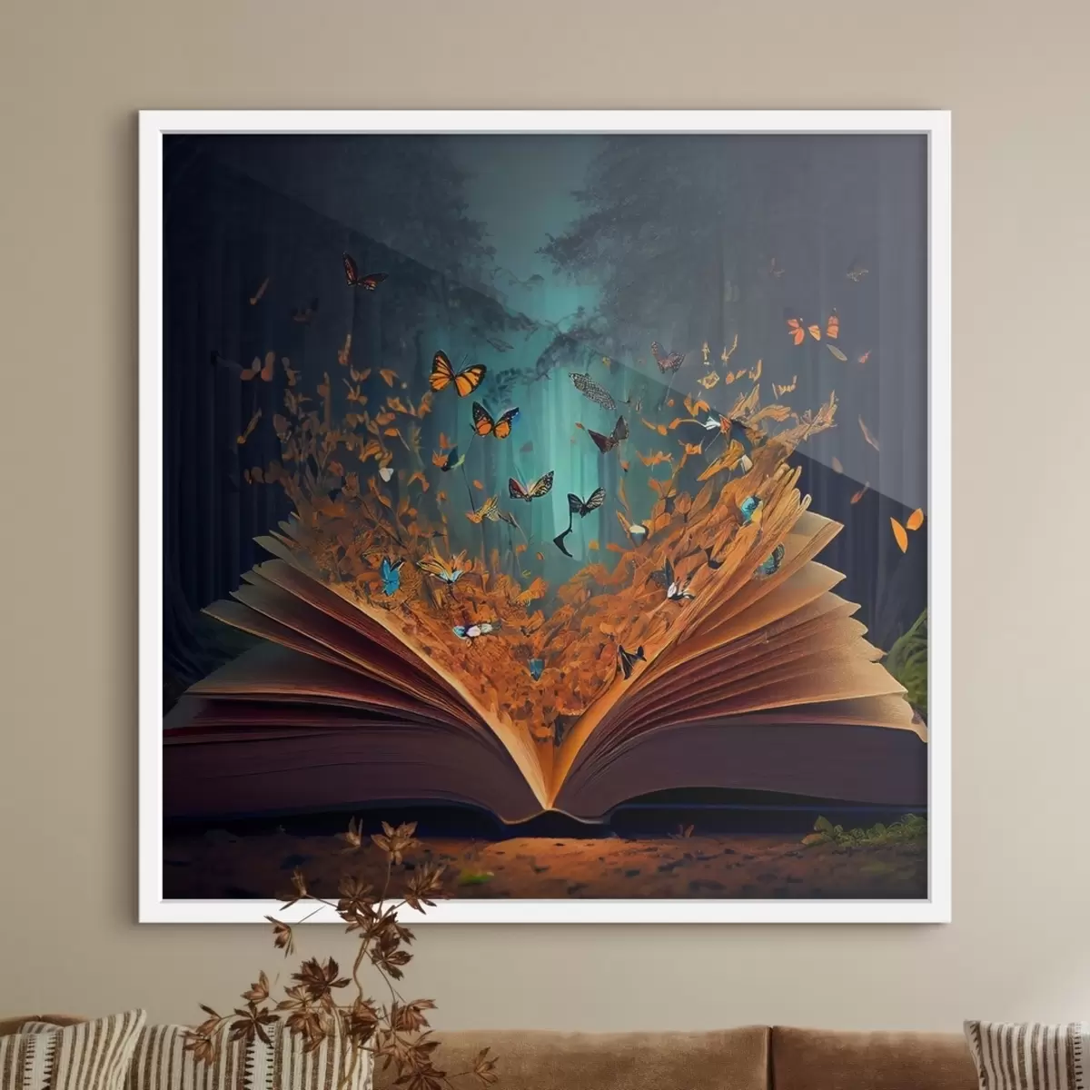 Poster Ein Märchenbuch mit Schmetterlingen im Wald f33915