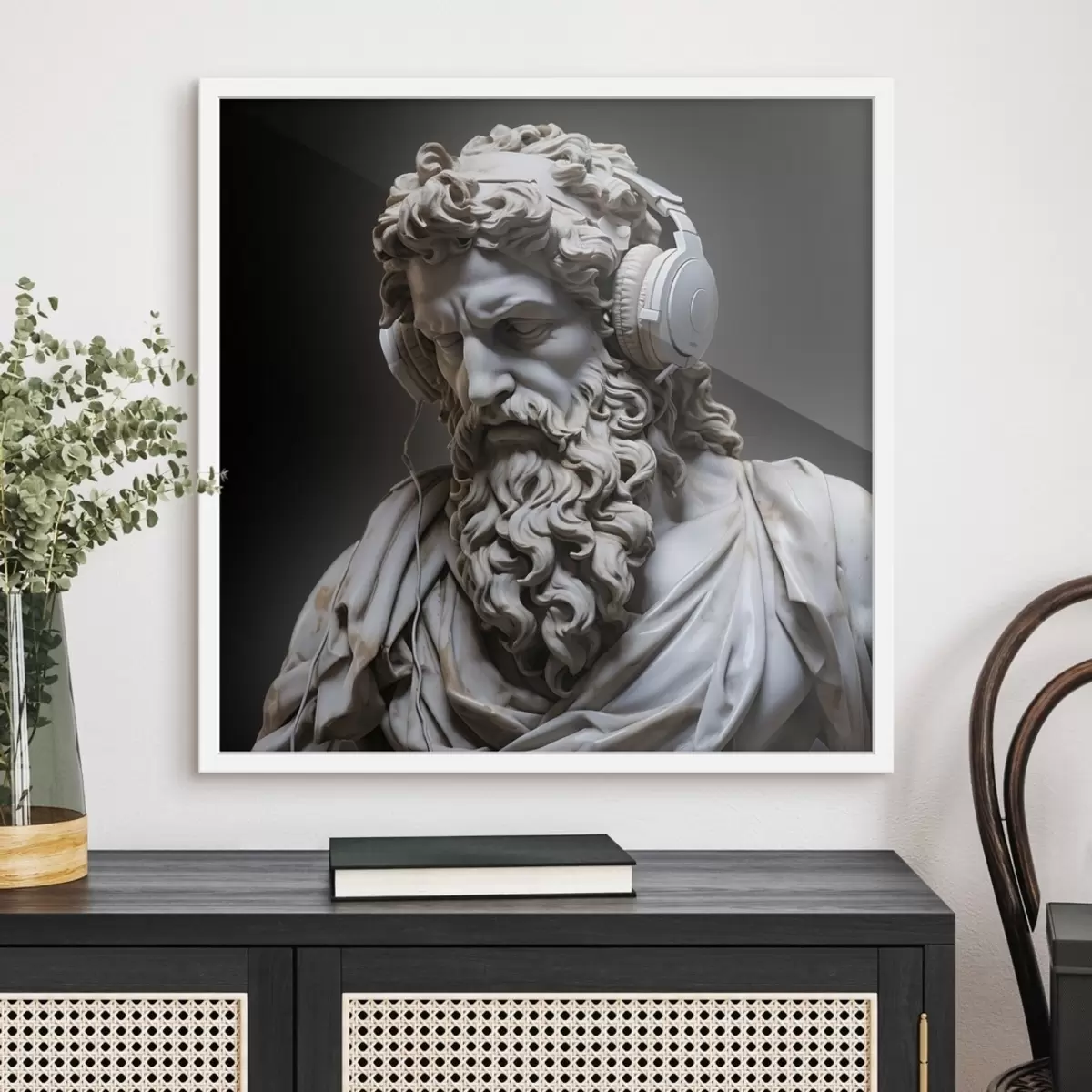 Das Poster besteht aus einem Rahmen, Plexiglas, einem gedruckten Bild und einer Rückwand aus Spanplatten. Dank der Halterungen auf der Rückseite kann das Poster sofort an die Wand gehängt werden.