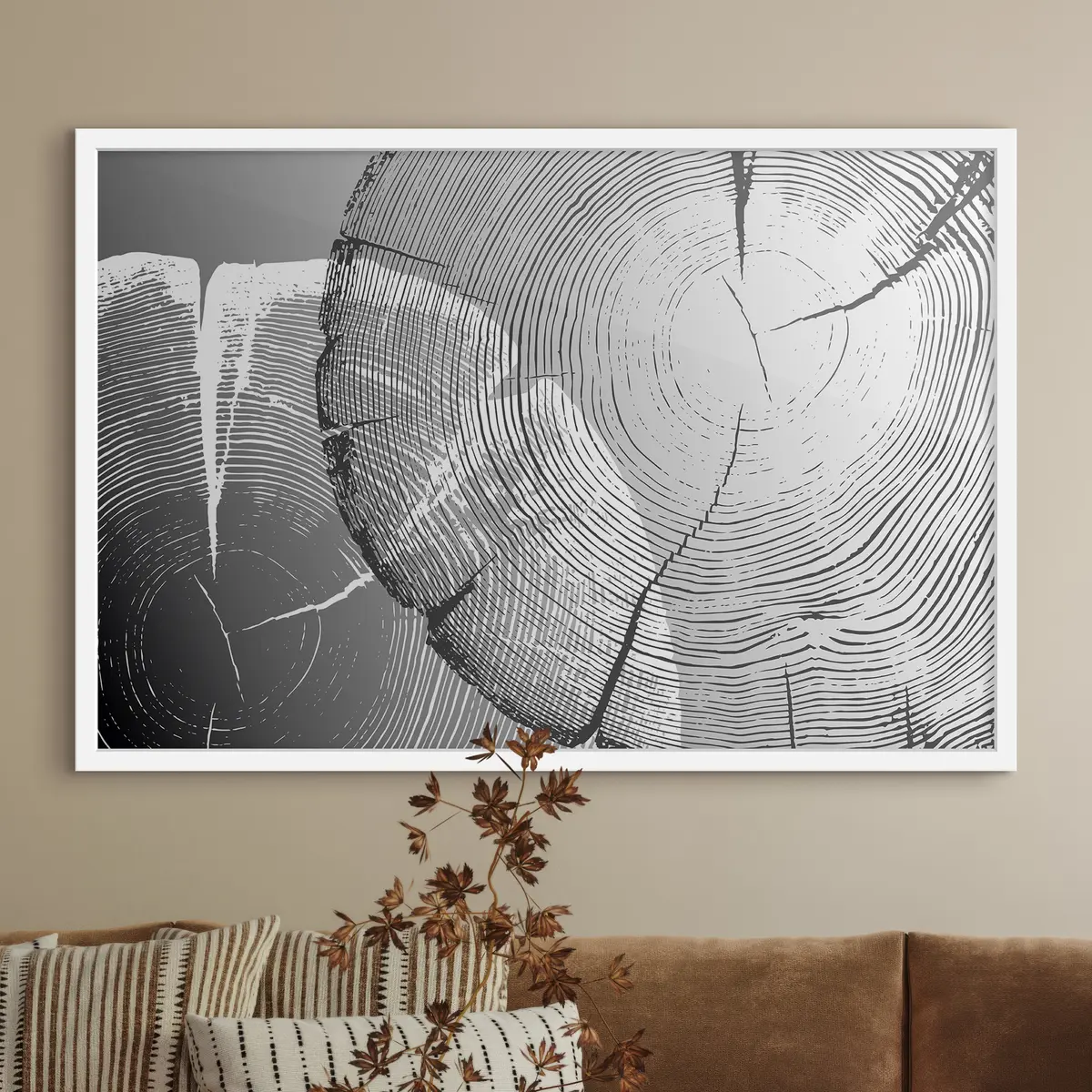 Poster Aus Holz geschnittene schwarze und weiße Kreise f35994