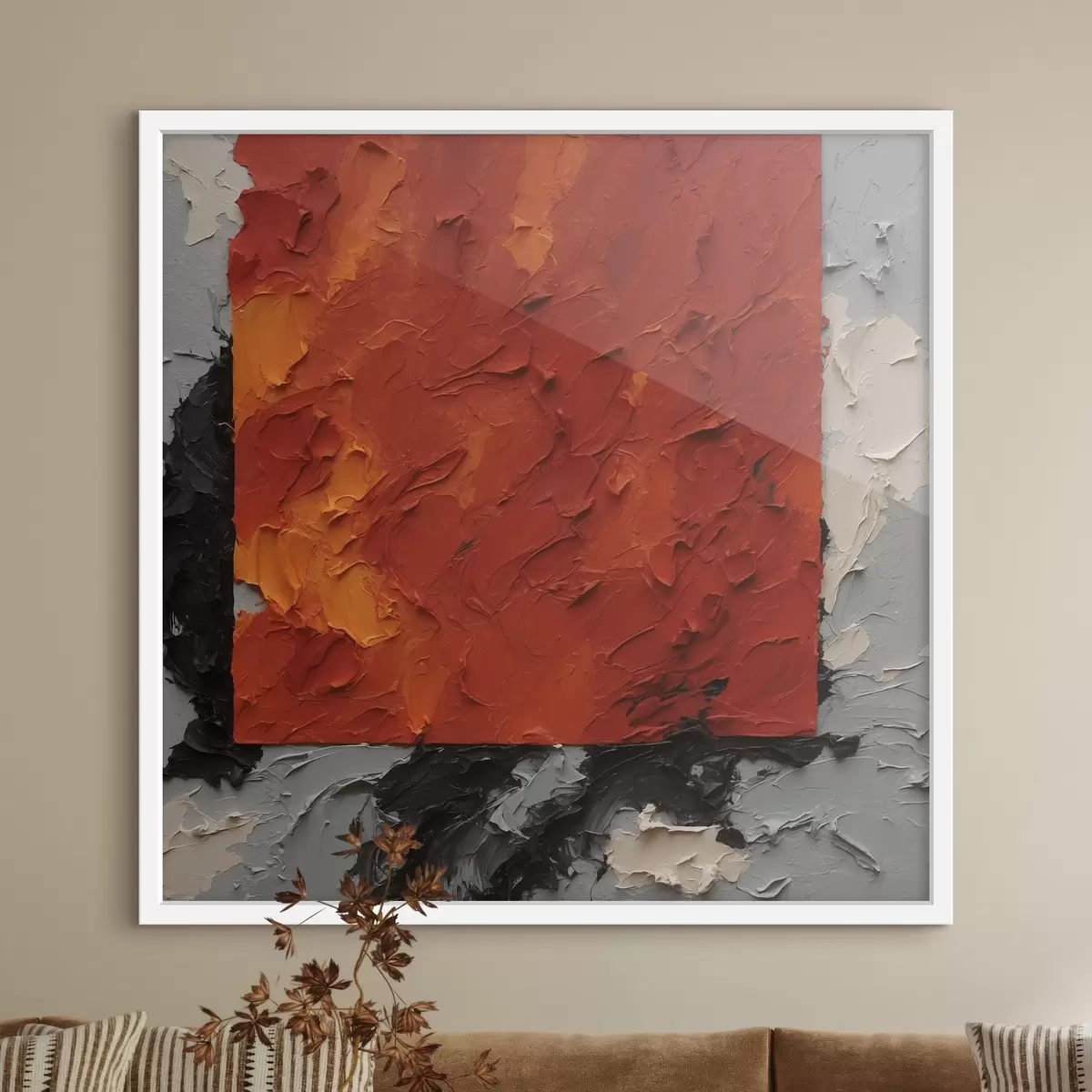 Poster Abstraktes Ölgemälde mit rotem Quadrat Nr f37167