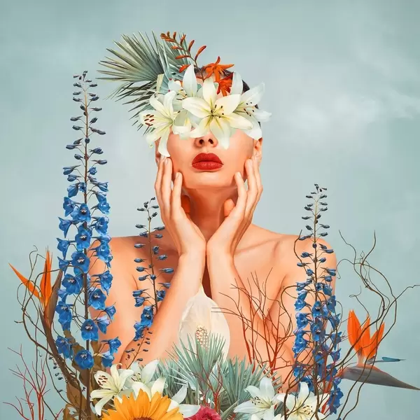 Poster Frau mit Blumen um ihr Gesicht f37477
