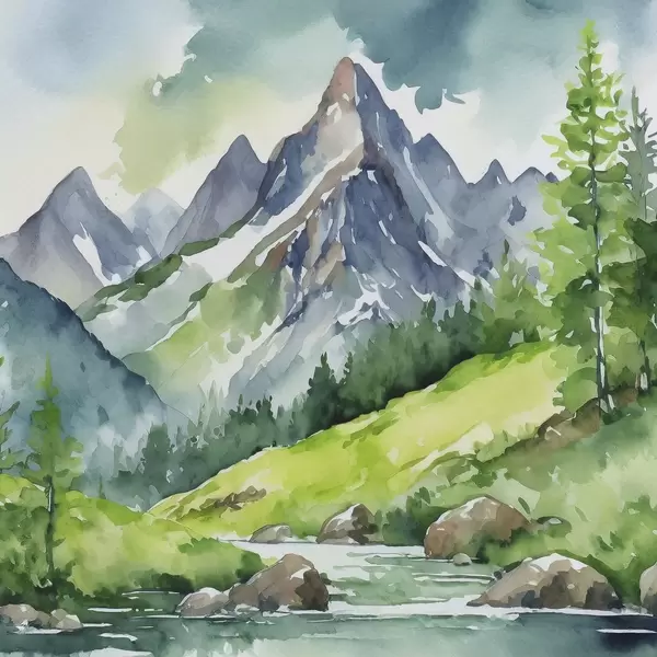 Poster Gelassene Berglandschaft in Aquarell Nr f37958