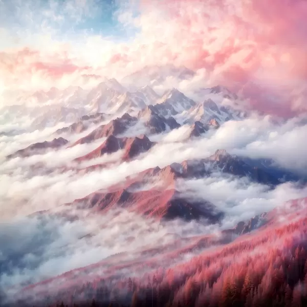 Poster Bergkette mit Wolken und Bäumen Nr f38358