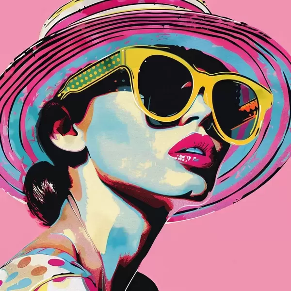 Poster Buntes Porträt einer stilvollen Frau mit Sonnenbrille f38508