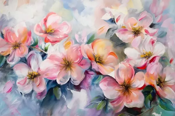 Poster Ein Gemälde, das rosa Blumen darstellt Nr f38644