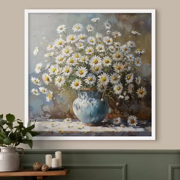 Poster Eine Vase mit Gänseblümchen auf dem Tisch f38707