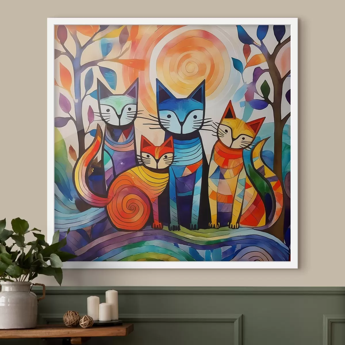 Poster Mehrfarbige Abstraktion mit interessanten Katzen f38815