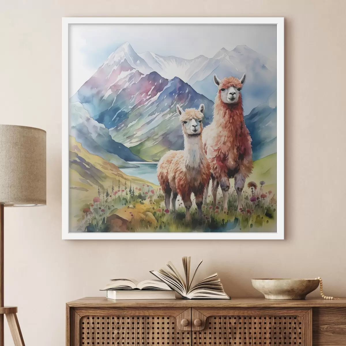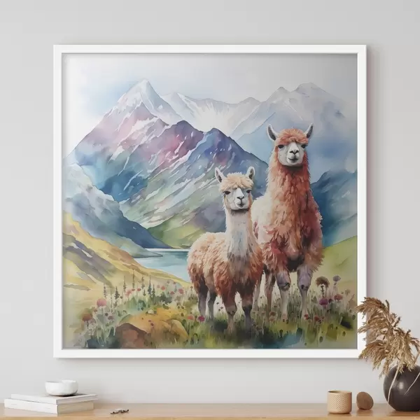 Poster Lamas erkunden eine lebendige Landschaft Nr f38934