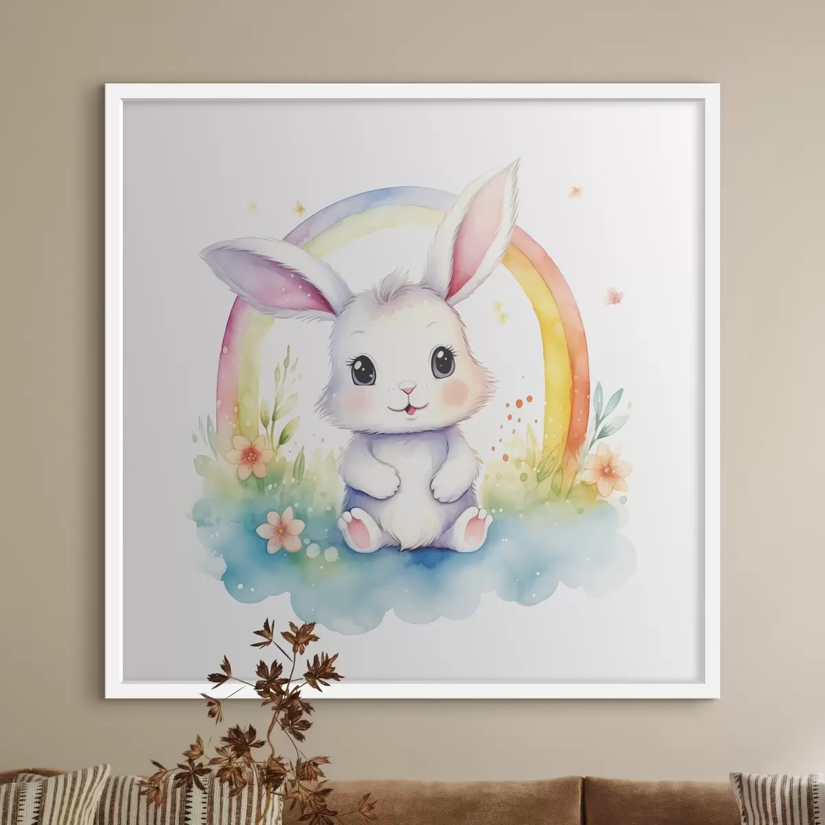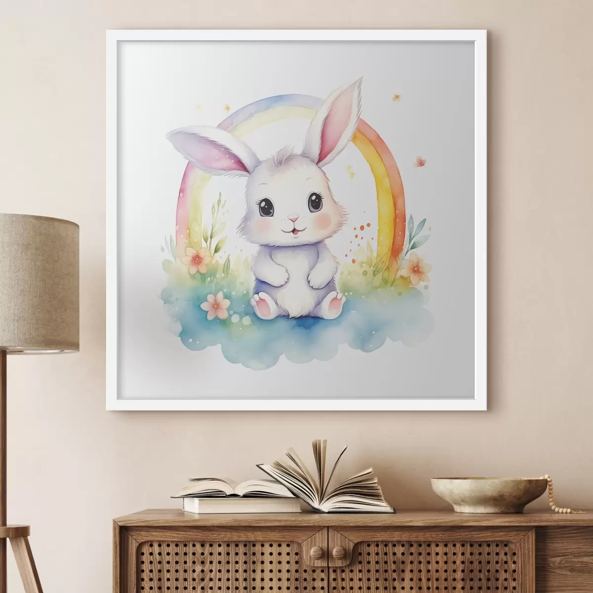 Poster Niedlicher Hase unter einem Regenbogen Nr f38940