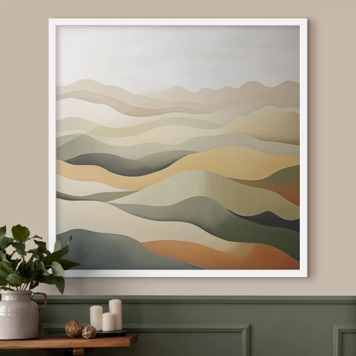 Poster Hügel, abstrakte Landschaft, Gouache, grün, ocker, sepia, grau Nr f38952