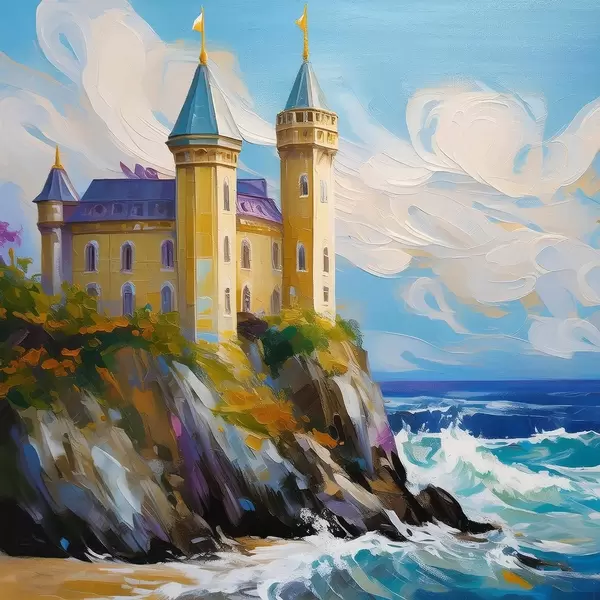 Poster Majestätisches Schloss an der Meeresküste Nr f39057