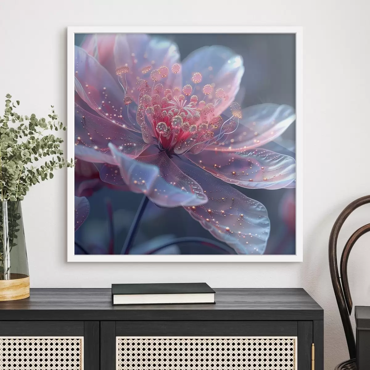 Poster Niedliche große fraktale Blume in Blau und Rosa Nr f39740