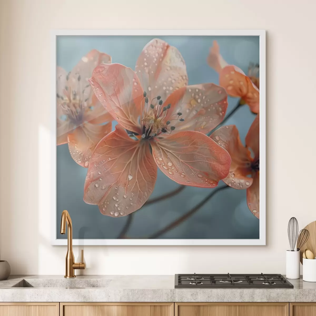 Sie können das Bild an Schrauben aufhängen. Dazu legen wir unseren Bildern Halterungen bei, mit denen Sie das Bild bequem aufhängen können.