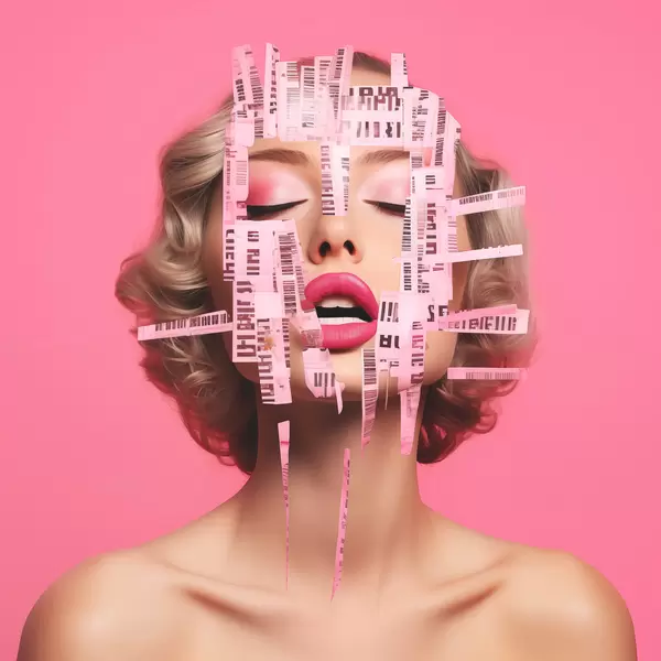 Poster Porträt eines Mädchens mit Barcodes auf rosa Hintergrund f40100