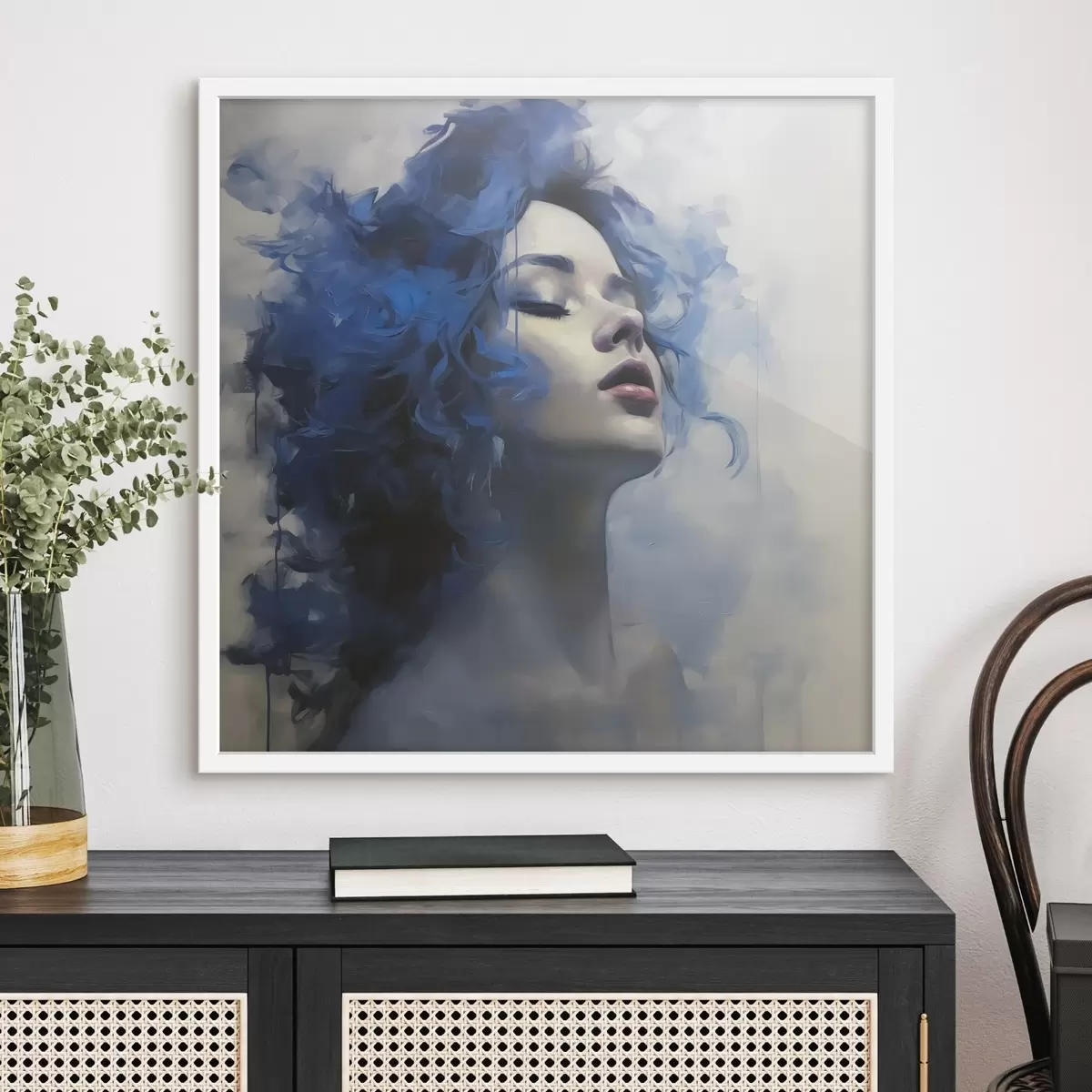 Poster Porträt eines Mädchens mit blauen Haaren auf grauem Hintergrund Nr f40218