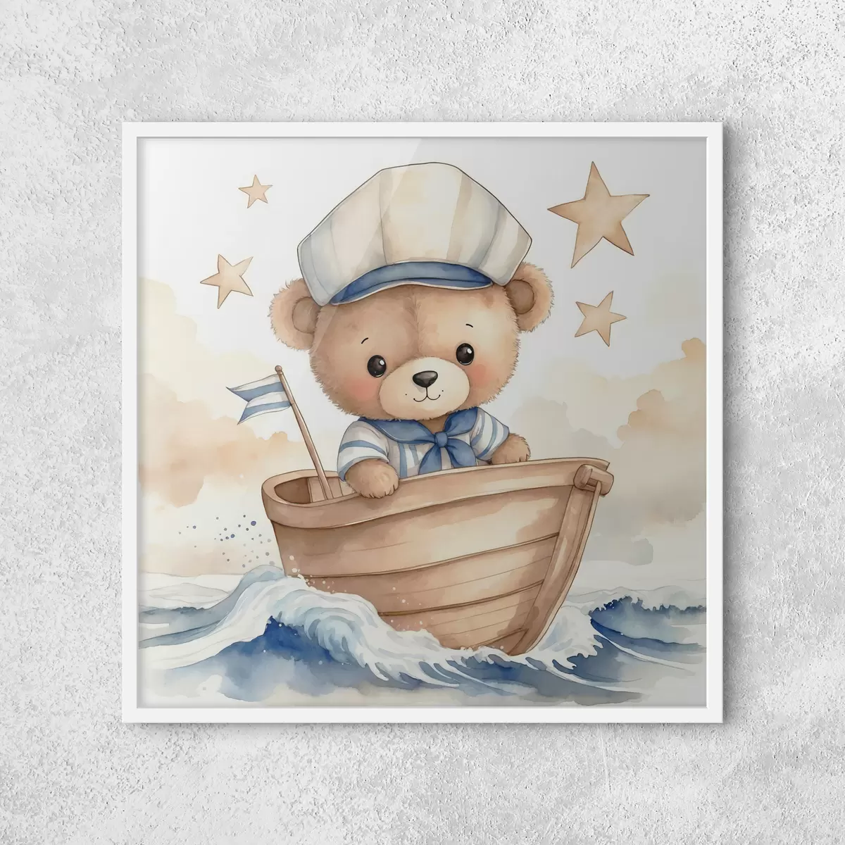 Poster Niedlicher Aquarell-Teddybär in einem Boot Nr f40428
