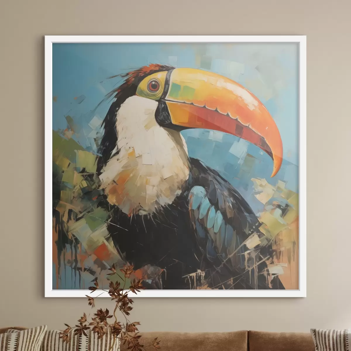 Poster Tukanvogel auf blau-grünem Hintergrund, Nachahmung von Pinselstrichen Nr f40498