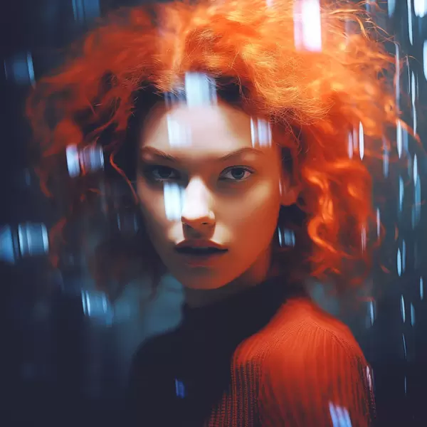 Poster Mädchen mit roten Haaren auf dunkelblauem Hintergrund f41934