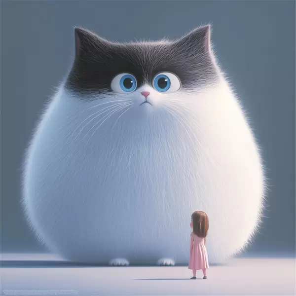 Poster Eine überraschte flauschige Katze mit einem Mädchen im Illustrationsstil Nr f41974