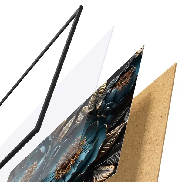 Das Poster besteht aus einem Rahmen, Plexiglas, einem gedruckten Bild und einer Rückwand aus Spanplatten. Dank der Halterungen auf der Rückseite kann das Poster sofort an die Wand gehängt werden.