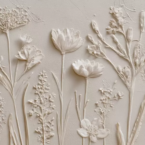 Poster Abstrakte Komposition: Basrelief-Stil mit Blumen auf hellem Hintergrund f45535
