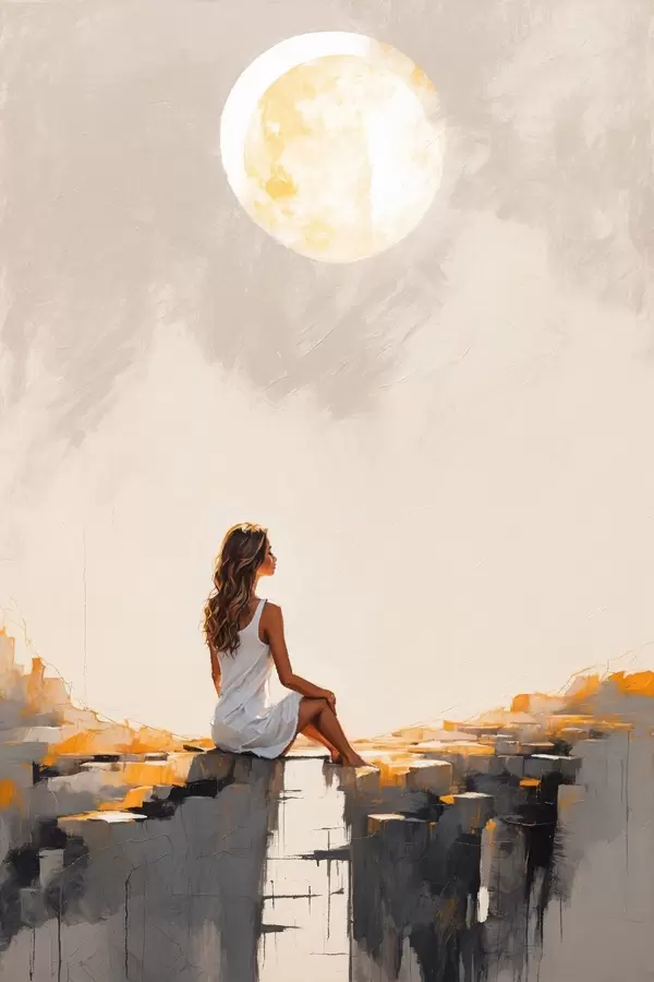 Poster Mädchen im weißen Kleid sitzt unter einem großen Mond Nr f45621