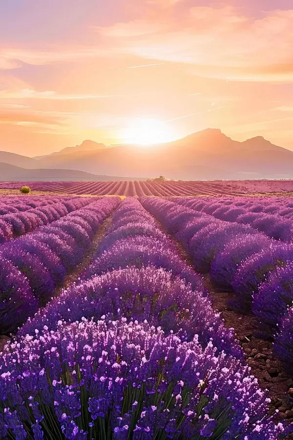 Poster Sonnenuntergang in einem Lavendelfeld Nr f45663