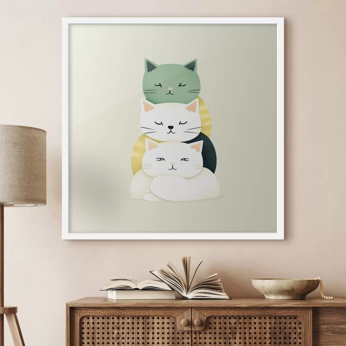Poster Komposition von drei Katzen im Animationsstil f45734