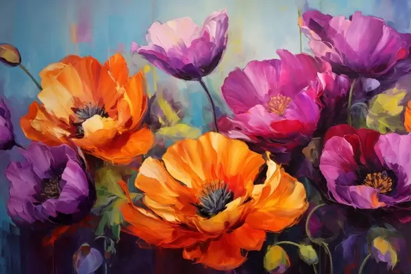 Poster Leuchtende Mohnblumen in Violett- und Orangetönen Nr f45804