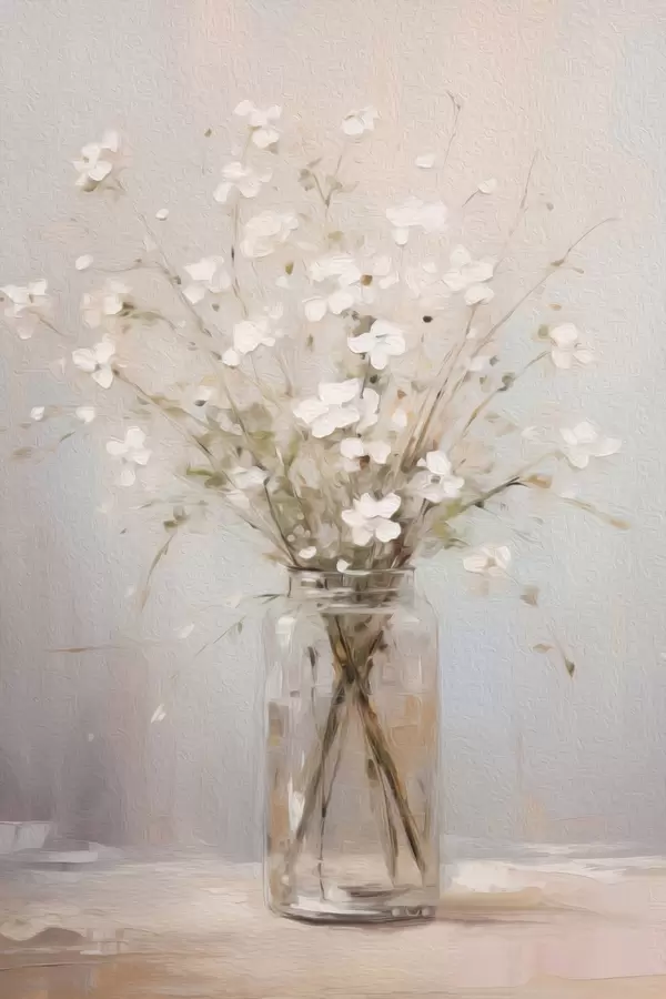 Poster Ein Strauß weißer Blumen in einer transparenten Glasvase Nr f45814