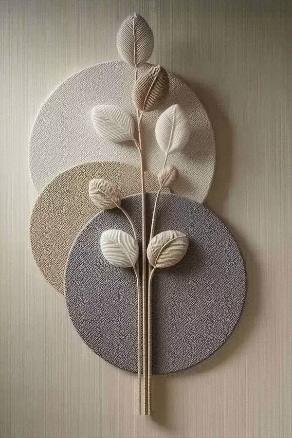 Poster Reliefkreise und ein Ast in warmen, neutralen Farbtönen Nr f45883