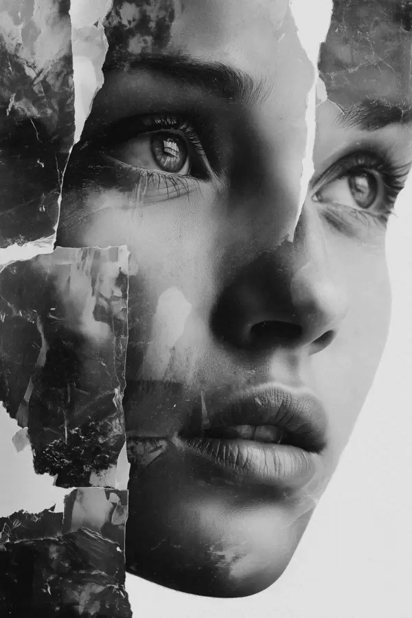 Poster Schwarz-Weiß-Collage-Porträt mit zerrissenen strukturierten Schichten f45898