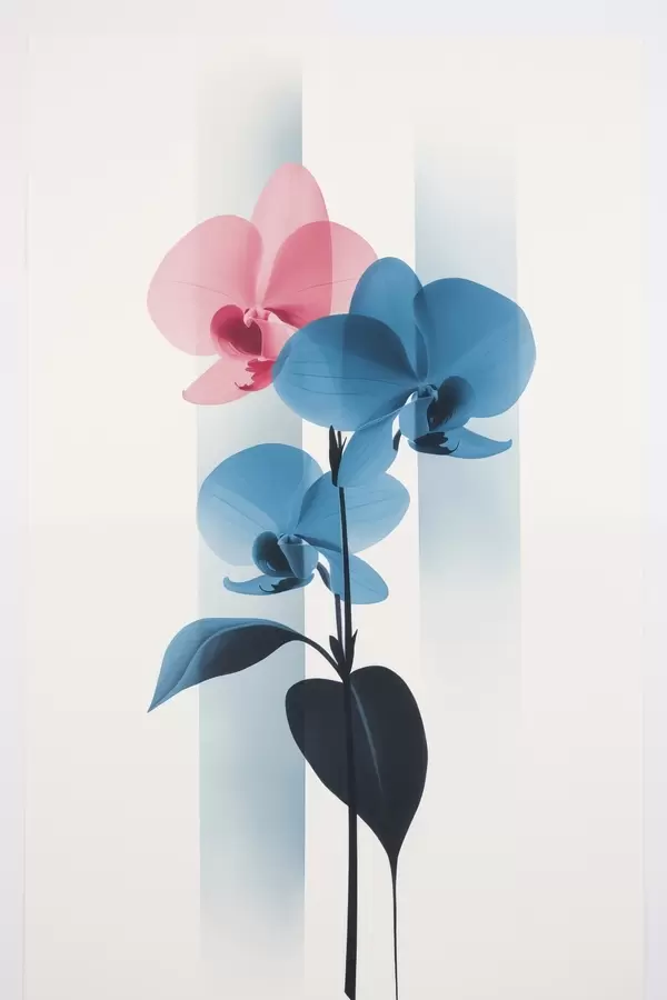 Poster Orchideen mit Blättern auf weißem Hintergrund mit vertikalen Streifen Nr f45925