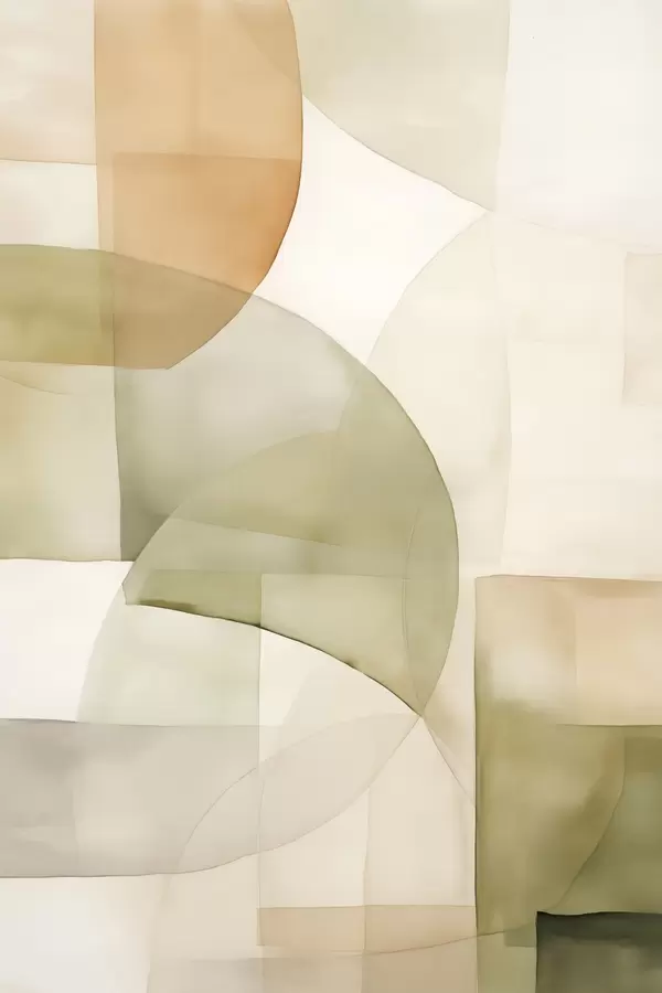 Poster Abstrakte geometrische Formen mit Aquarellstruktur in Grün-, Braun- und Beigetönen Nr f45929